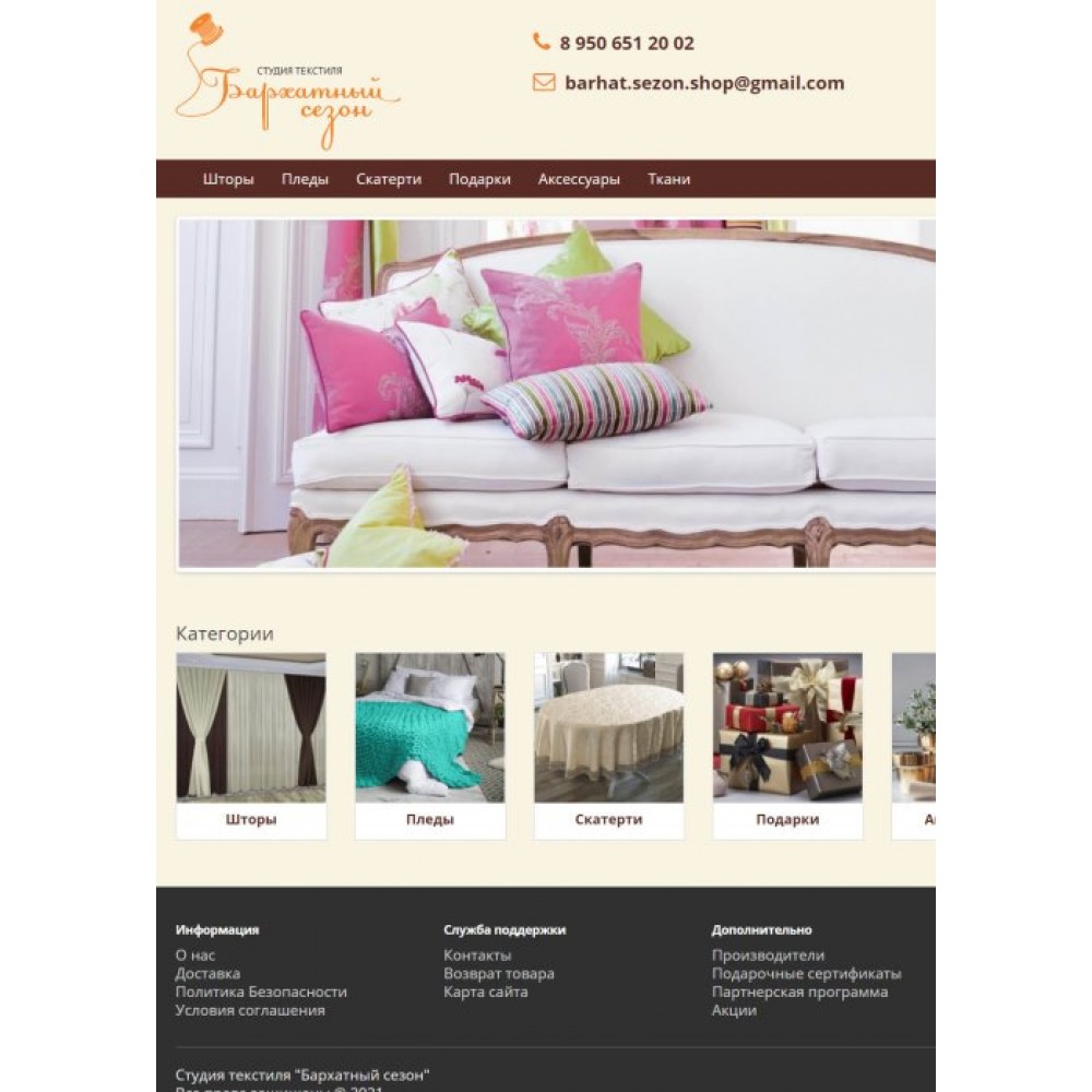 Интернет-магазин студии текстиля "Бархатный сезон" от веб-студии Максвебсайт г. Талица