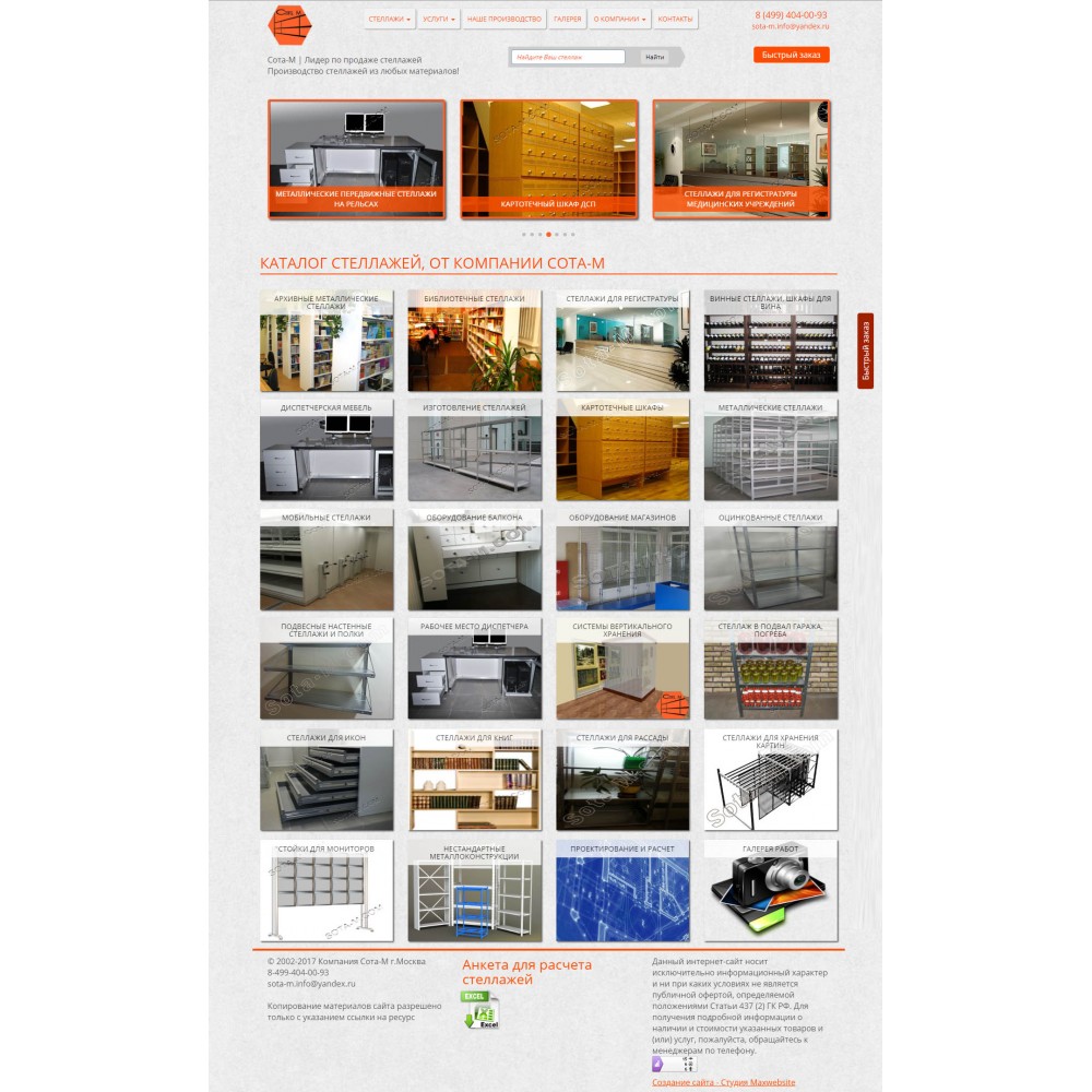 Сайт каталог, по продаже металлических стеллажей, от веб-студии Максвебсайт г. Талица