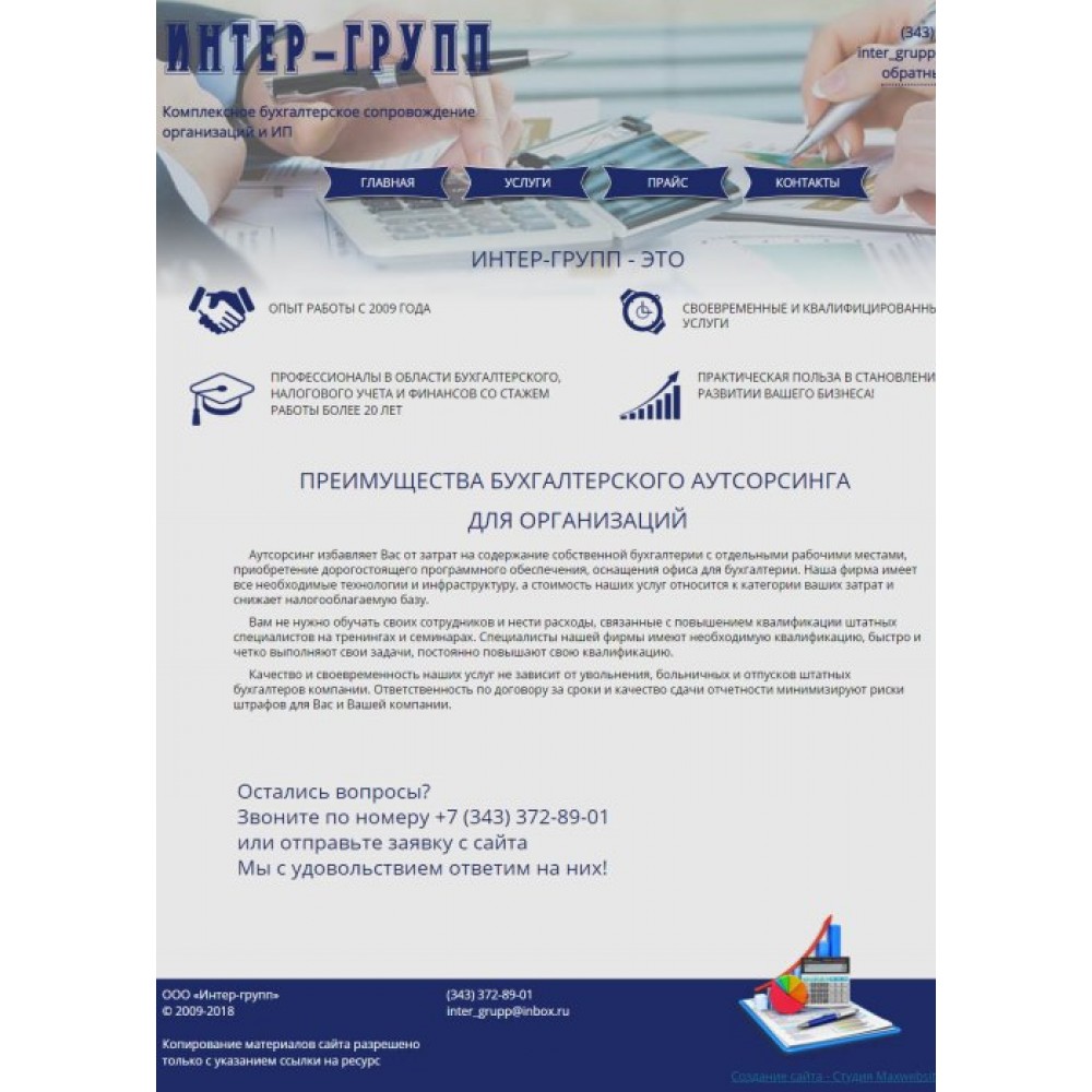 Сайт-визитка бухгалтерской компании г.Екатеринбург от веб-студии Максвебсайт г. Талица